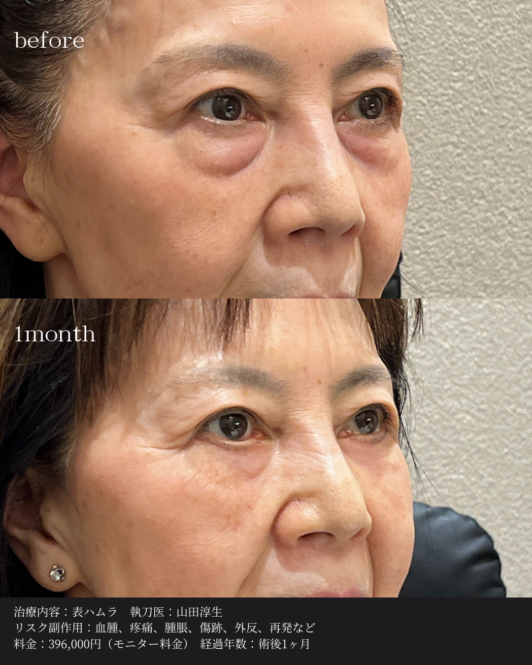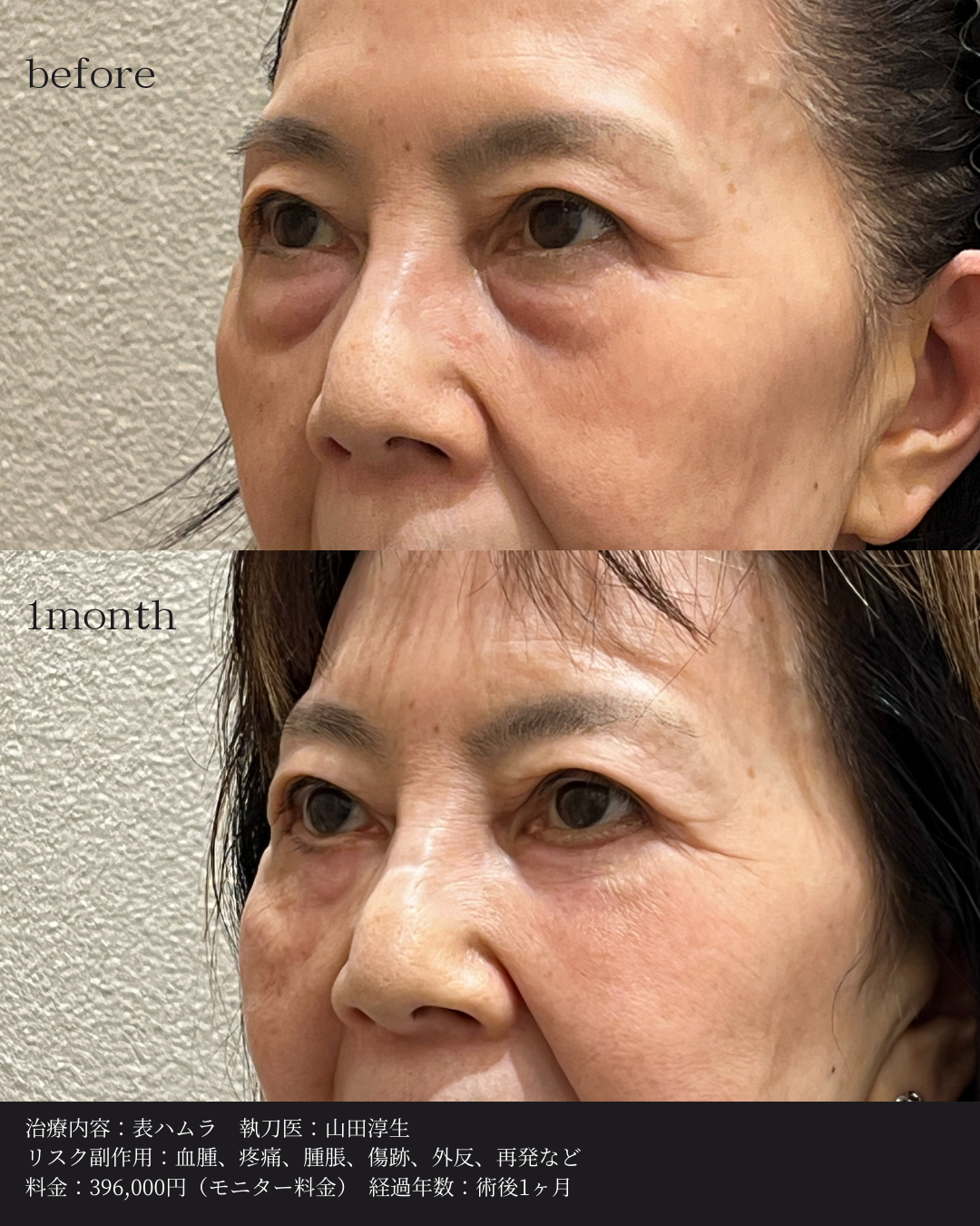 表ハムラ法は、下まぶたの皮膚を切開して余分な皮膚を取り除き、突出した脂肪を移動させることで目袋やたるみを改善する手術です。