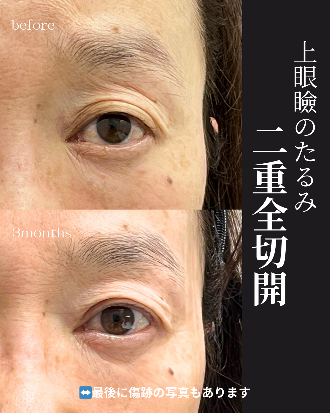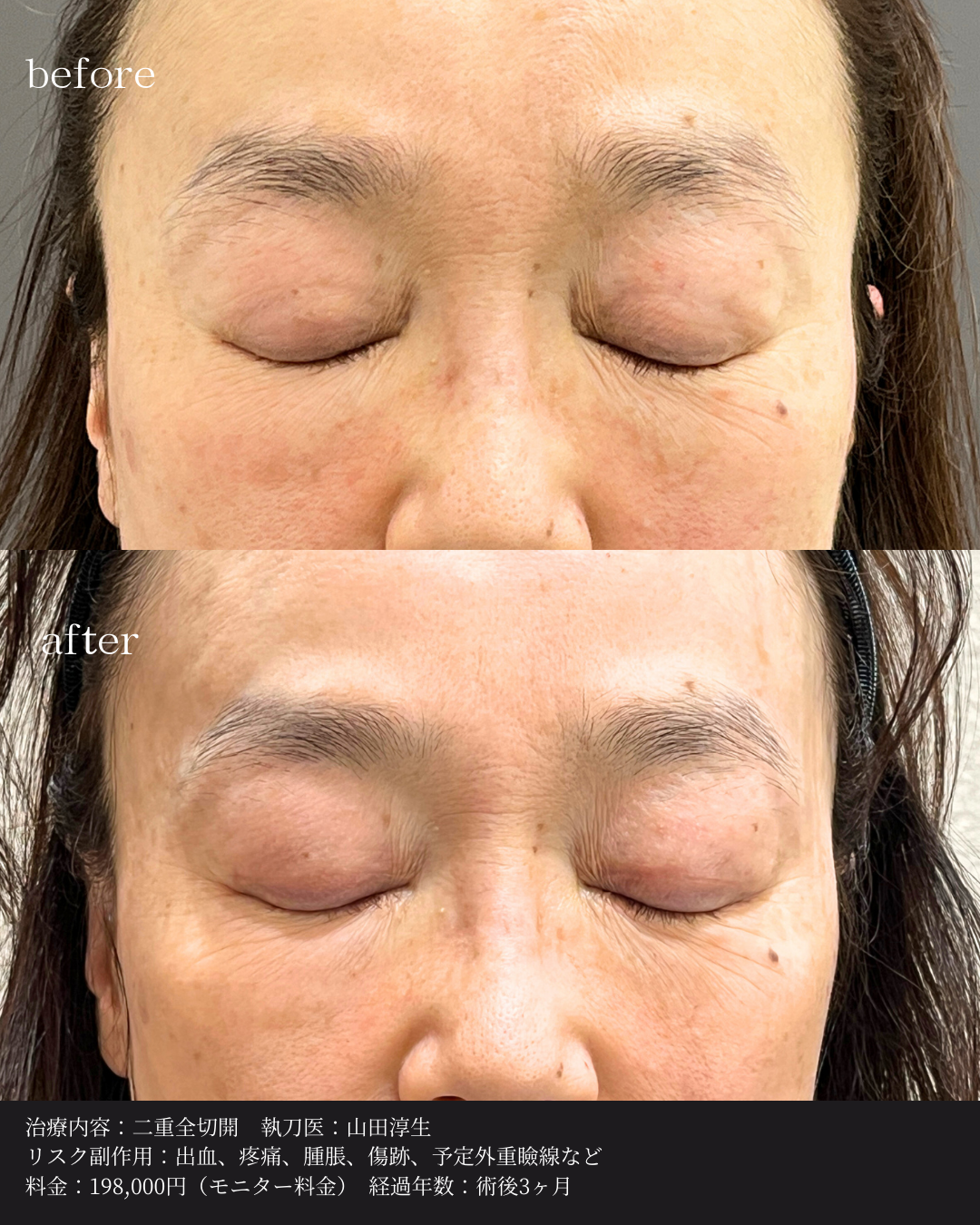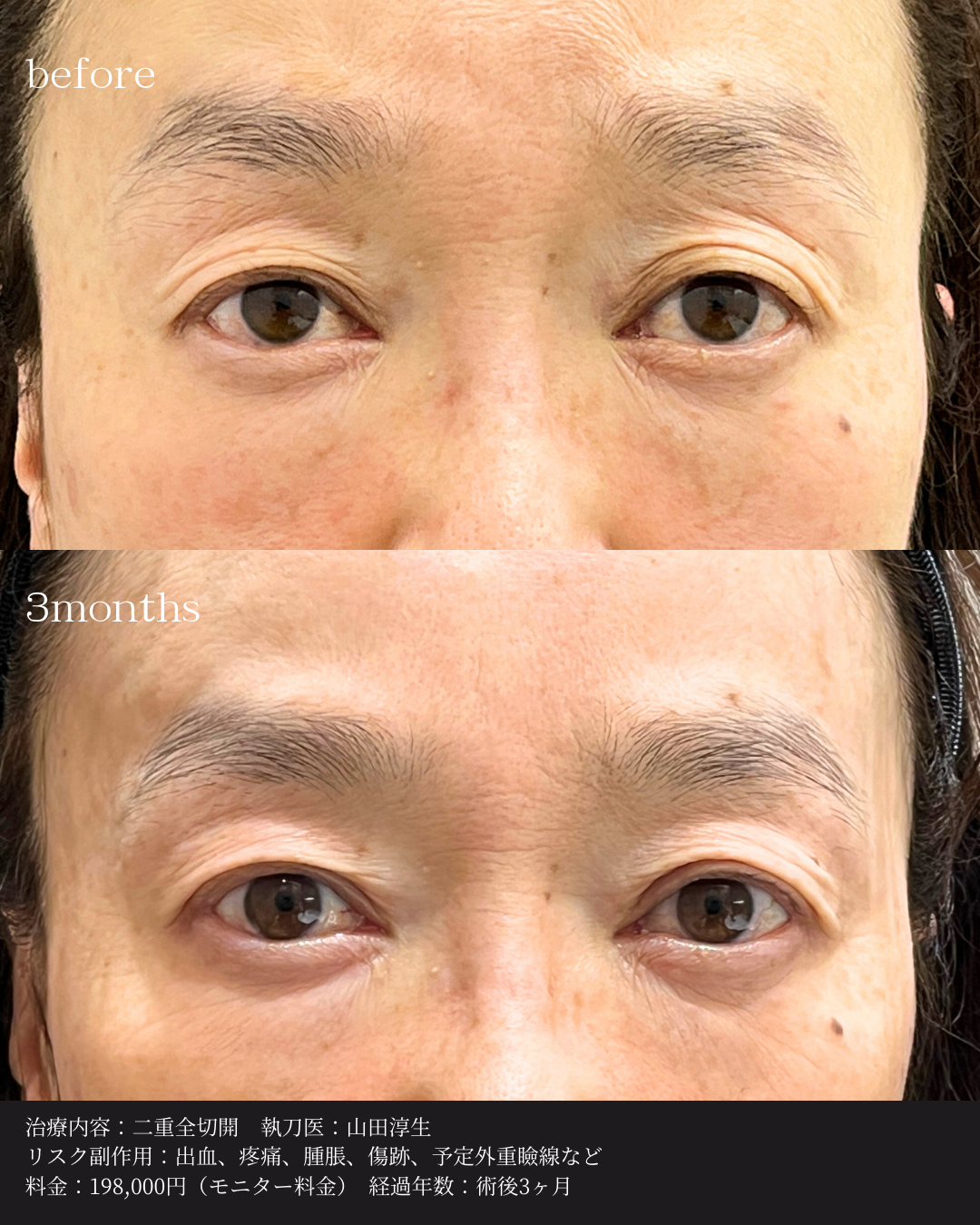 術後3ヶ月で、若々しい印象の目元を取り戻されています。
