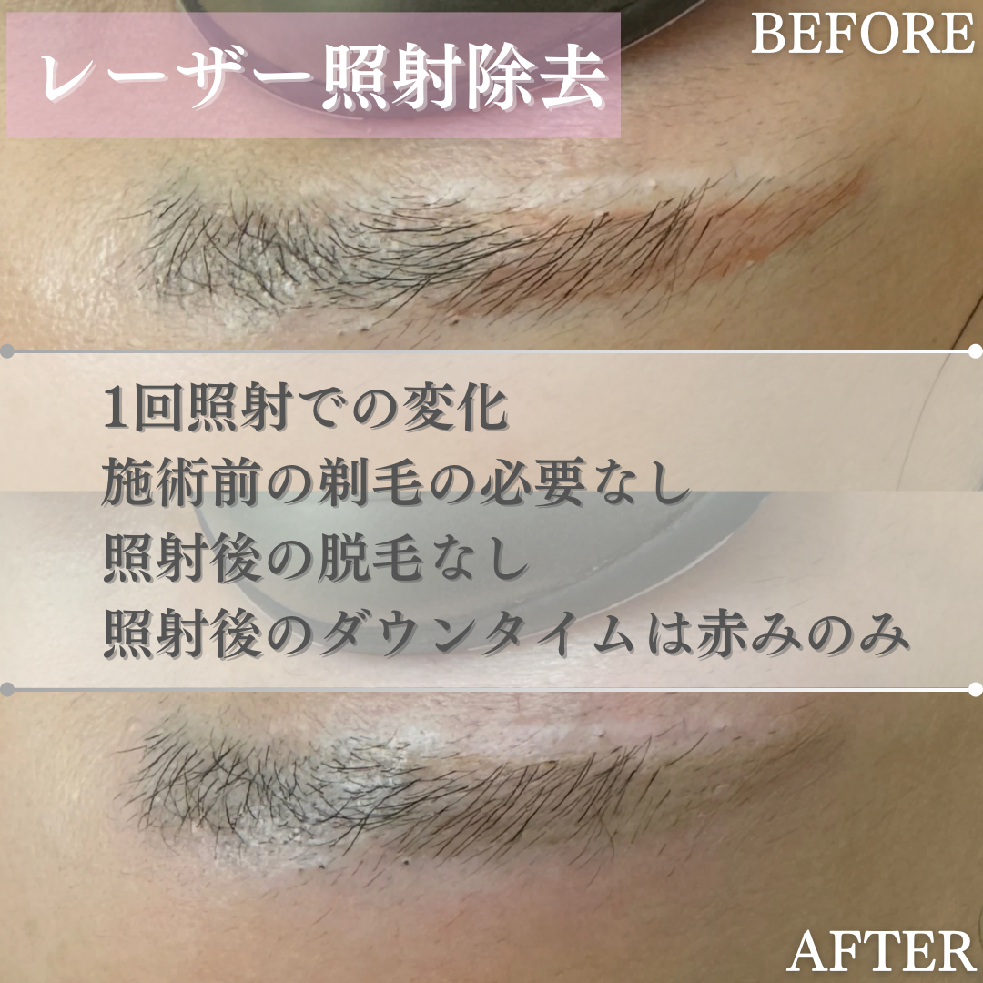 治療内容:アートメイク部分に専用のレーザーをお当てすることにより、色素を変色させて目立たなくする施術になります。