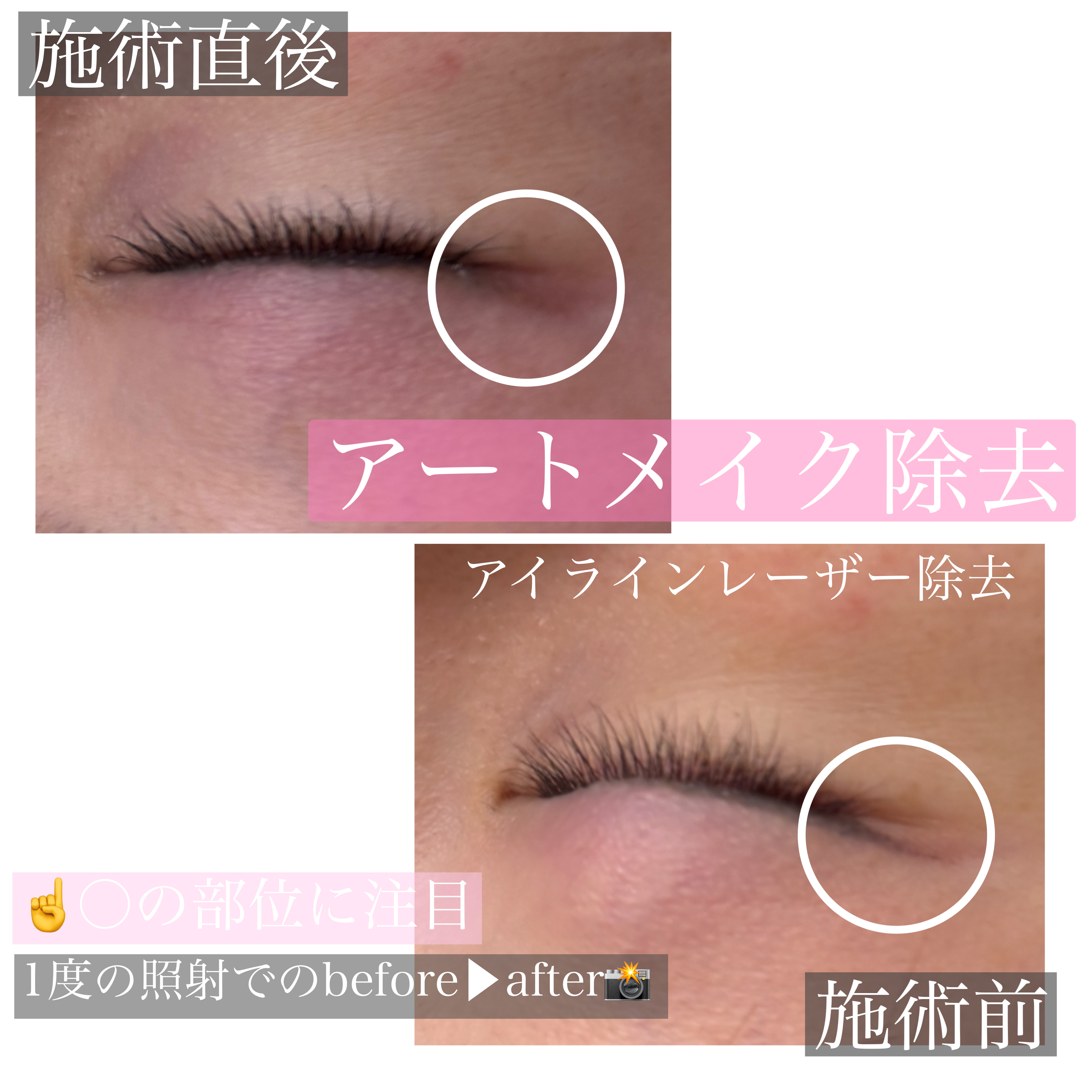 アイラインは皮膚が薄く、非常にむくみやすい部位です。「完全に色素をゼロにする」のか、それとも「上から修正できる程度まで薄くする(土台作り)」のかによって、選択すべき治療法や回数が異なります。