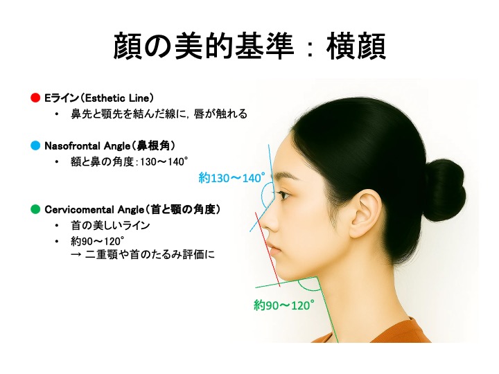 - Jawline:顎ラインが明瞭だとフェイスラインが美しい